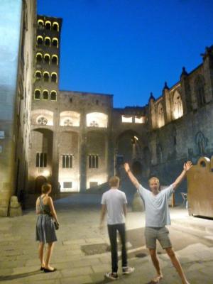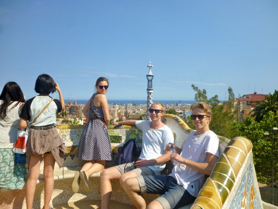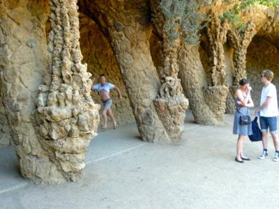 Jessica, Josh and myself ate at a food bar that had meat hanging from the ceilings and screwed up napkins were at our feet as we leaned against the bar eating melon with cured meat draped over it. After finding a sort-of-bar that was temporarily set up for travelers we drank a lot of beers and vodka shots because that is what the people around us were doing. The following morning a bullet train took us to Barcelona at 300 km/hr.