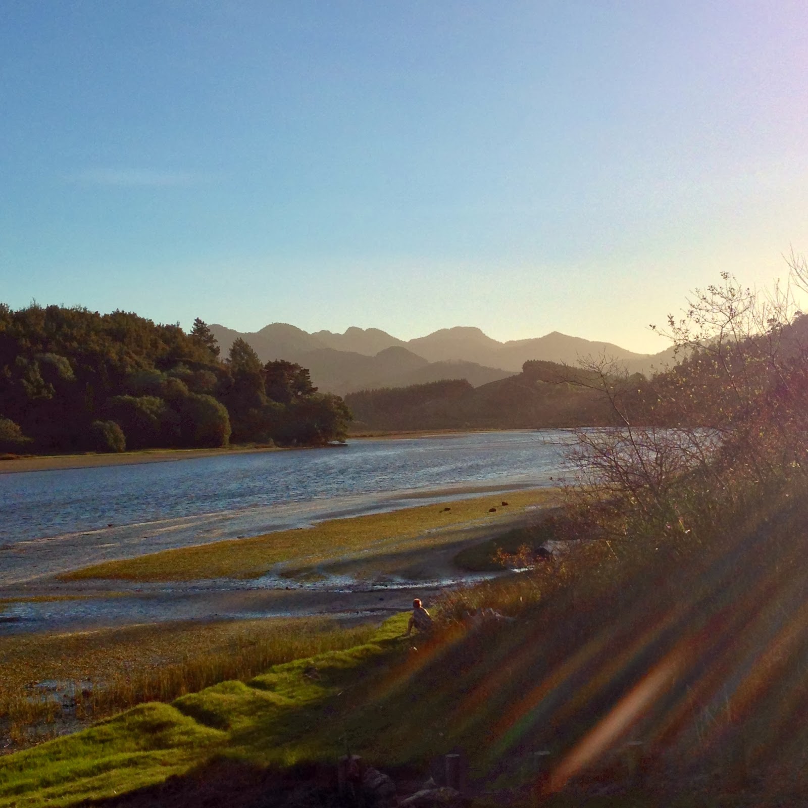 I stayed in a small Bach on a flat piece of land that backed into an estuary at one end of Whangamata’s surf beach. The waves from the beach reach around the sand – just enough to fill the estuary, creating a clear lake-like swimming hole at high tide.